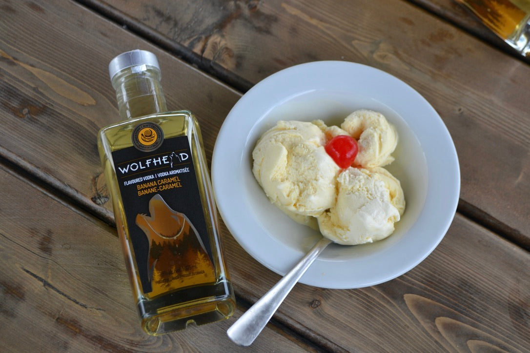 Add 2 oz of Banana Caramel Vodka over french vanilla ice cream. Optional (Add chocolate sauce and a cherry)