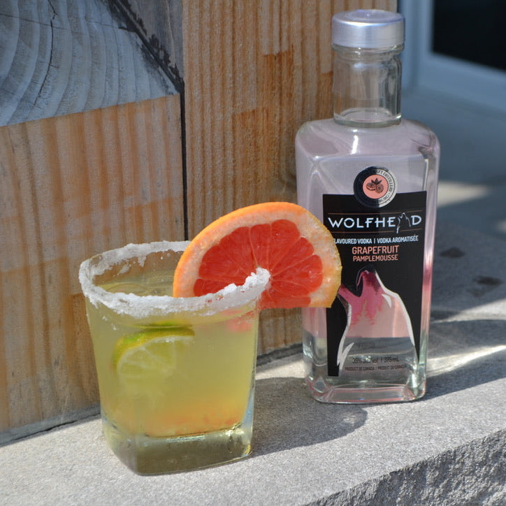 To a salt rimmed glass add 2 oz Grapefruit vodka shaken with ice and 2.5 oz of margarita mix.