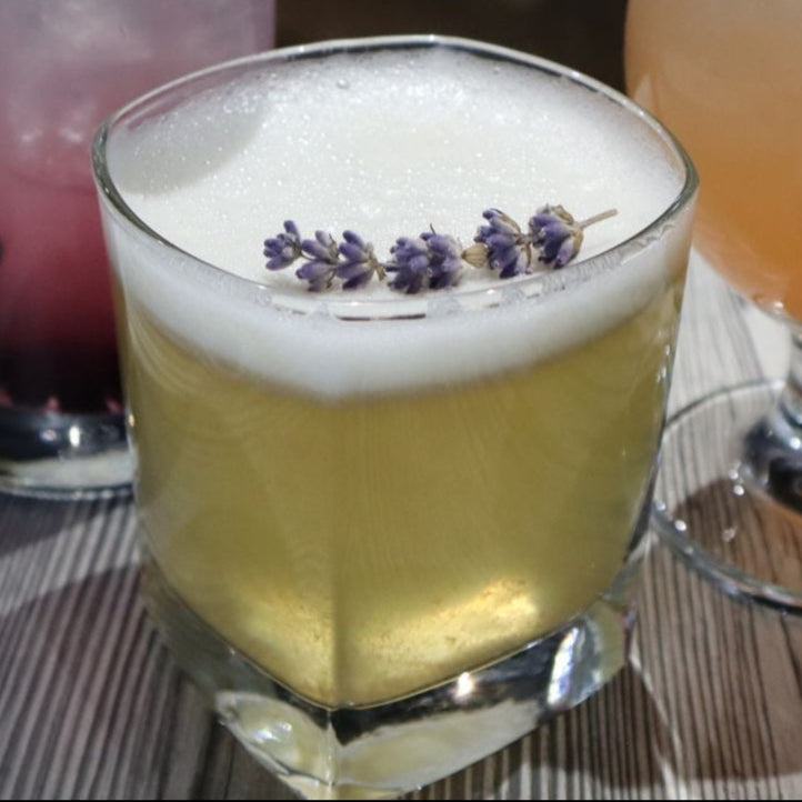 In a cocktail shaker, combine 2oz lemon juice, 1oz lavendar syrup, 2oz Whisky, and 1 egg white. Shake vigorously for 15 seconds. Add ice and shake again. Strain into a rocks glass and garnish with a lavender sprig.