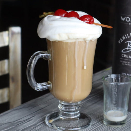Kick your barista game up a notch. In a coffee mug, combine 1oz Whisky, 1oz Vanilla Almond Biscotti, 1/2oz maple syrup, and top with coffee. Garnish with whipped cream and a cherry.